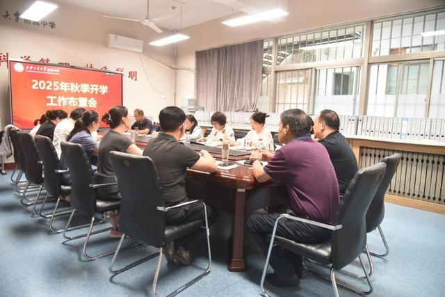 为确保新学期高效开局,附属学校领导提前谋划,周密部署,狠抓落实。8月21日,校领导班子开会研究秋季开学准备工作。22日至30日,学校相继召开行政扩大(含教研组长、年级组长)会议、班主任会议、新教师培训会、教师专业发展培训会、全体教职工大会,安排秋季学期准备工作,组织云课堂班业务培训等。党总支、校长骞军荣要求各科室、各年级组及教研组、各位教职员工按照学校安排,各司其职,精心落实,全面做好开学各项准备工作。