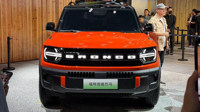 标志性的“BRONCO”英文标识占满了前脸的视觉中心,宽大且可点亮,与两侧圆形的数字化大灯相连,横向灯带改为双层布局,更显科技感。